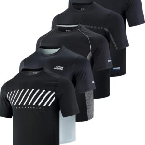 5 Pack Men\u2019s Active Quick Dry Crew Neck T Shirts | Athletic Running Gym Workout Short Sleeve Tee Tops Bulk